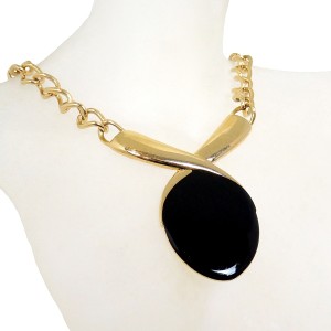 Bijzondere zware kwaliteit vintage Monet designer collier / choker met zwart kleurig emaille. Het heeft een brede schakelketting en heeft een mooi klassieke chique uitstraling. Het weegt 72,2 gram en valt soepel om de hals. Zeer stijlvol!