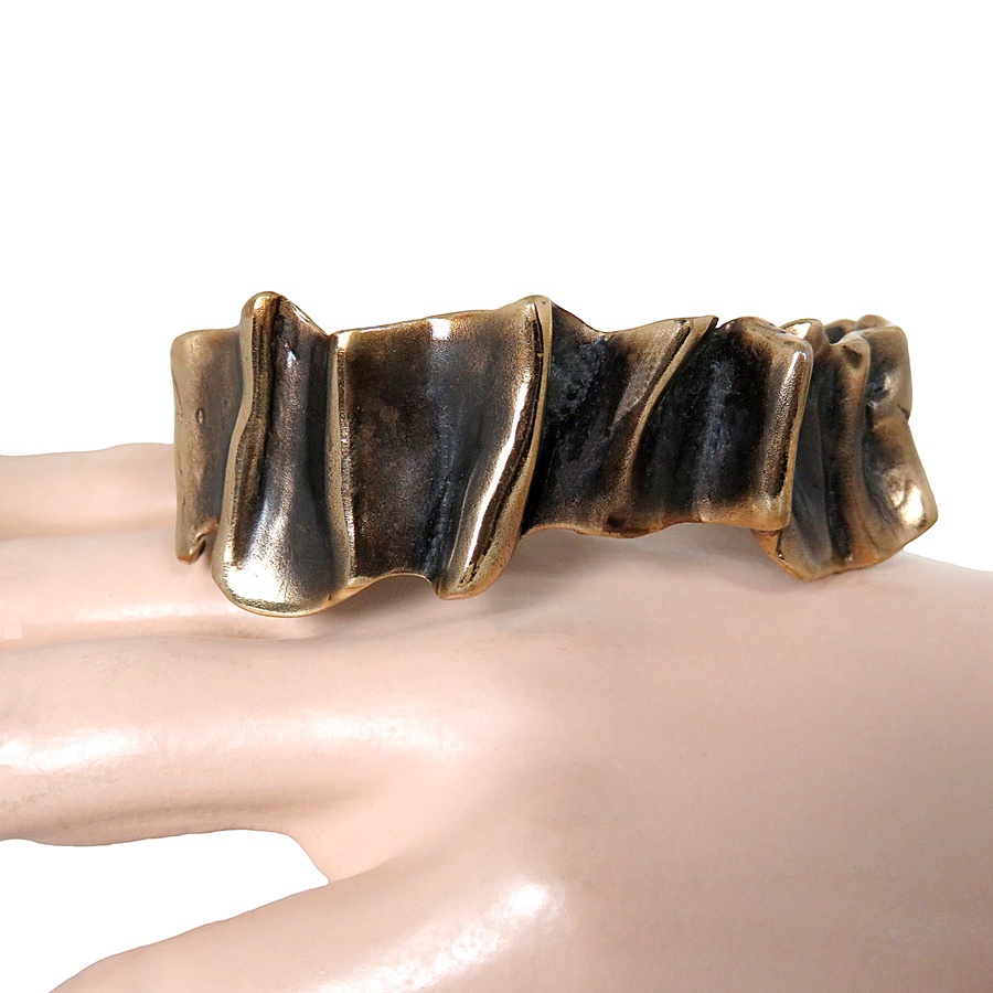 Prachtige modernistische bronzen spang armband van de bekende Nederlandse kunstenaar Harrie Lenferink. Deze handgemaakte organisch gevormde armband is een waar meesterwerk. Het is in de 80er jaren gemaakt en weegt 40,6 gram.