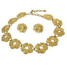 Zeer fraaie vintage goudkleurige sieraden set met bloemen, 50er - 60er jaren.