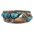 Grote vintage Navajo Indianen (Amerika) 925 zilveren spang armband met turquoise en koraal.