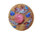 Antieke Chinese vermeil (verguld) zilveren broche met rozenkwarts en emaille kraanvogels, 20er - 40er jaren.