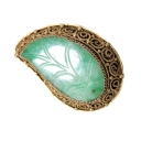 Art Deco metalen dress of revers clip met handgesneden malachiet, 40er - 50er jaren.