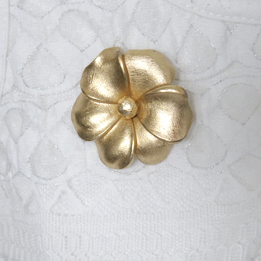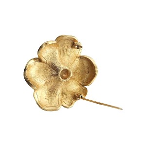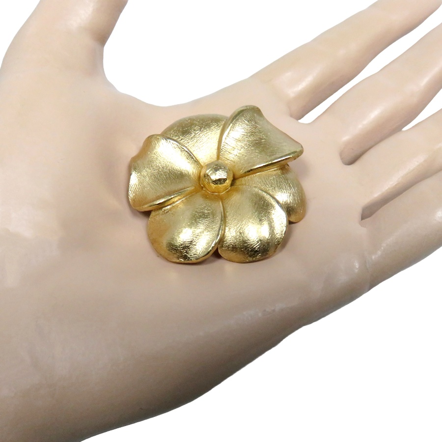 Prachtige goudkleurige vintage Christian Dior broche uit de 80er - 90er jaren. Een elegante en sierlijke goudkleurige metalen designer broche die de vorm heeft van een bloem. Deze massieve broche weegt 16,2 gram.