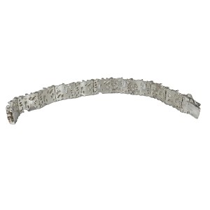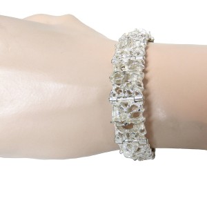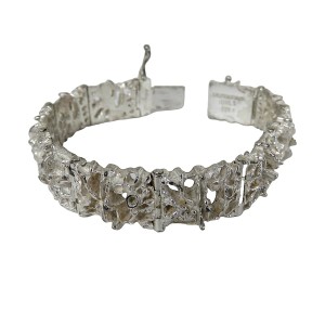 Prachtige modernistisch 925 zilveren schakel armband van de Noorse topdesigners Frank en Regine Juhl. Het is in de 80er jaren gemaakt en is onderdeel van de Tundra series. Deze massieve organisch gevormde modernistische-brutalistische armband weegt 53,9 gram.