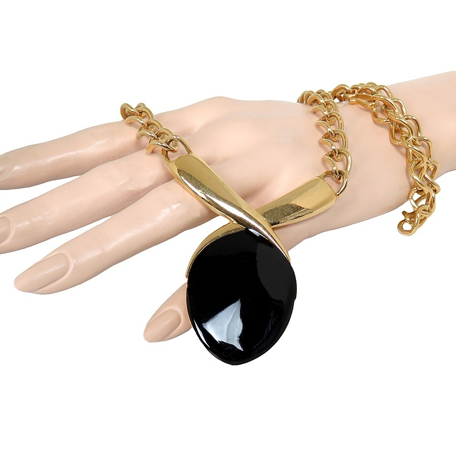 Bijzondere zware kwaliteit vintage Monet designer collier / choker met zwart kleurig emaille. Het heeft een brede schakelketting en heeft een mooi klassieke chique uitstraling. Het weegt 72,2 gram en valt soepel om de hals. Zeer stijlvol!