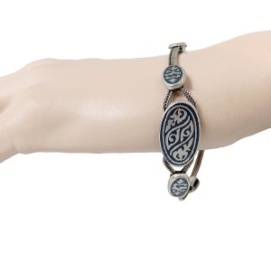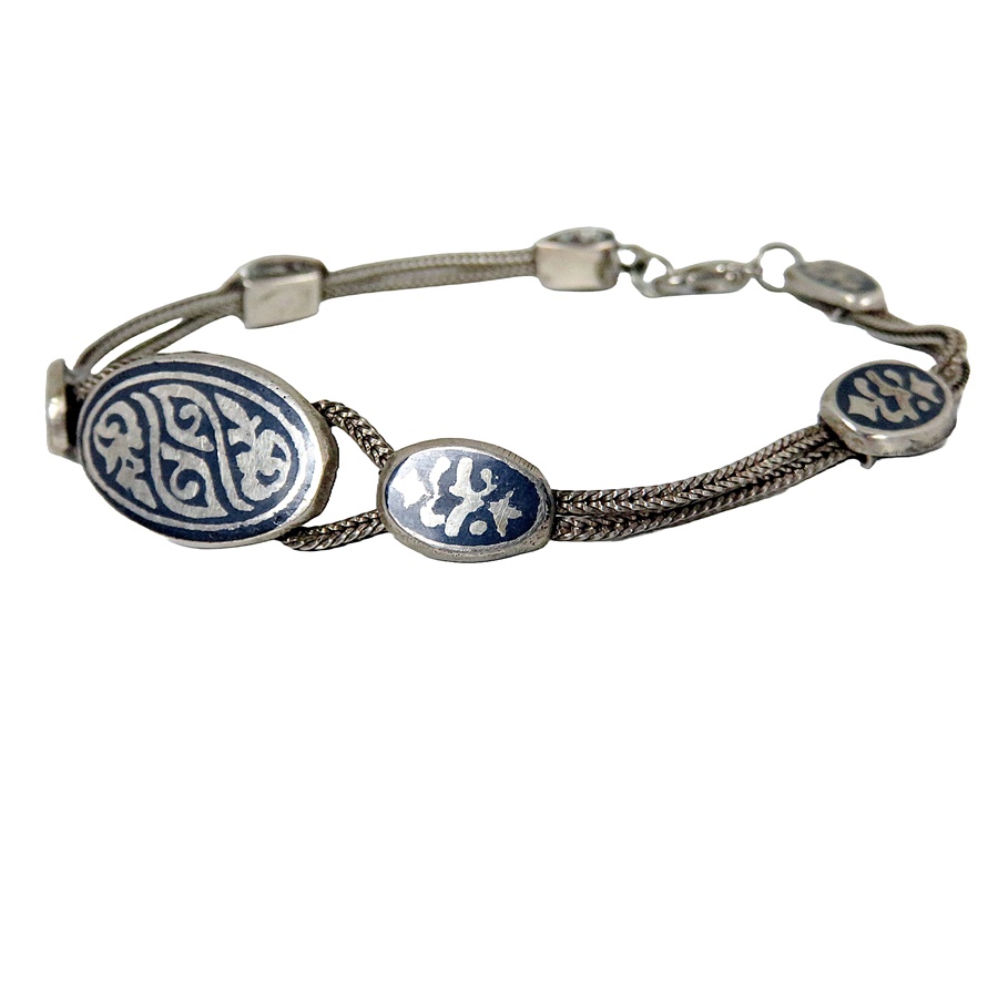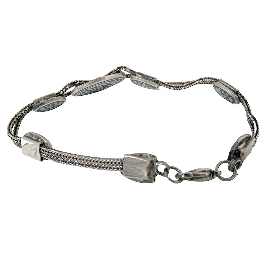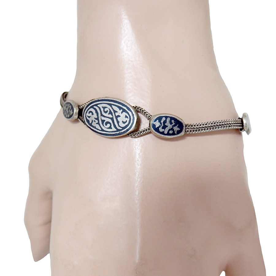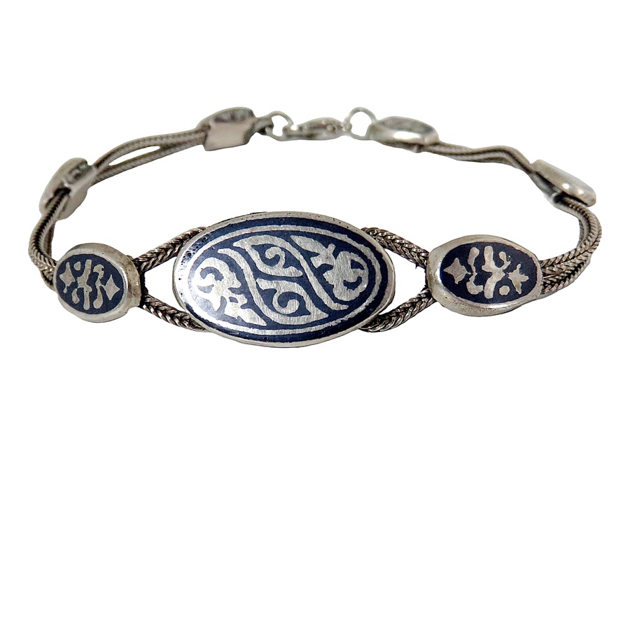Prachtige gesigneerde 900 zilveren armband met fantasie motieven en Niello inleg. Een stijlvolle vintage armband met een fraaie glans. Het weegt 17 gram.