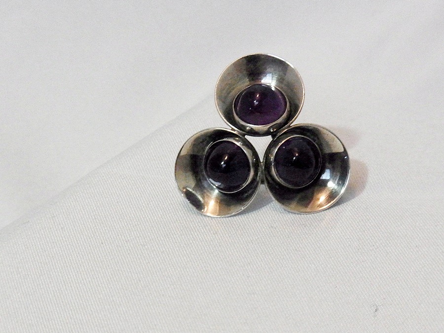 Zeer fraaie handgemaakte 925 zilveren broche van de Deense designer Niels Erik From. Hierin zijn prachtige rondgeslepen (paarse) Amethisten verwerkt. De broche is waarschijnlijk in de 60er/70er jaren gemaakt.