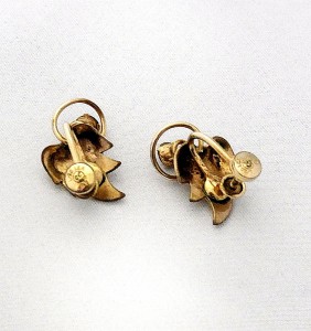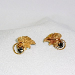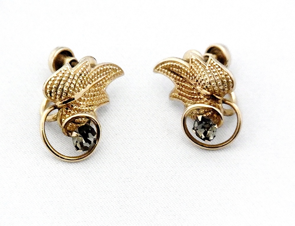 Vintage Curtman (CurtisCreations) 12K Gold filled Smokey rhinestone schroef oorbellen. Zeer delicaat geconstrueerde oorbellen met getextureerd blad en een gedraaide cirkel met een rookglazen rhinestone. Zeer chique en goed gemaakt. Deze oorbellen dateren waarschijnlijk uit de jaren vijftig. The Curtman Company, Inc. is opgericht in 1936 in Providence Rhode Island (een plaats waar veel bekende sieraden producenten in die tijd gevestigd waren.