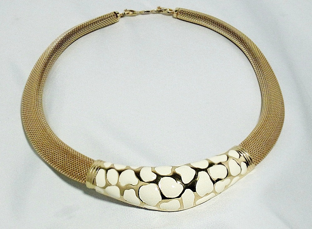 Prachtig vintage Christian Dior Collier met cremekleurig emaille. Het collier stamt waarschijnlijk uit de 70er of 80er jaren en is een echt statement.