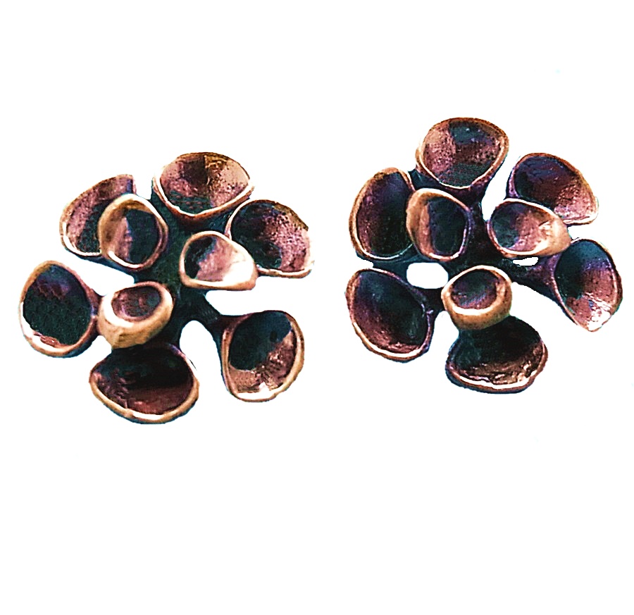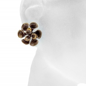 Modernistische bronzen clip oorbellen van de bekende Finse designer Hannu Ikonen met het zo typische bekertjesmos of rendiermos motief. Deze oorbellen zijn in de 70er/80er jaren gemaakt door de producent Valo-koru Oy en wegen samen 9,5 gram.
