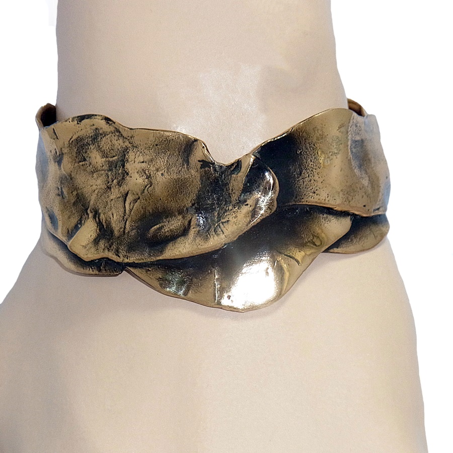 Prachtige modernistische bronzen spang armband van de bekende Nederlandse kunstenaar Harrie Lenferink. Deze handgemaakte organisch gevormde armband is een waar meesterwerk. Het is in de 80er jaren gemaakt en weegt 42,6 gram.